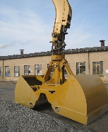 Zweischalen-Verladegreifer Schüttgut verladen für Schiffs- und Waggonver- und entladung. 1 bis 3 m³ Inhalt, 1000 - 2000 mm Breit. Verladegreifer auch mit niedriger Grabkurve - schont Schiffs- und Waggonboden. für Bagger bis 60 t